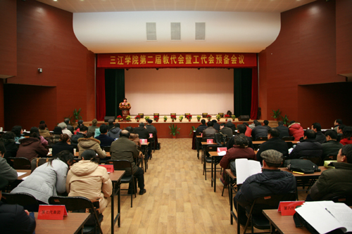 下午14:00,在学生工作部会议室,由陈万年校长主持召开了各代表团召集人会议。部署各代表团团长、副团长产生办法,工会委员和经费审查委员会委员候选人推荐工作及提案工作。14:30,各代表团召集人主持召开各代表团会议。会议选举产生了各代表团团长、副团长,并推荐了工会委员和经费审查委员会委员候选人预备人选。15:30,在三江会堂,由陈万年校长主持召开了“两代会”预备会议,出席会议的有骆志斌常务副校长、叶俊副校长、校理事会理事丁承憼、冯沪生、戚焕林及全体正式代表和列席代表。