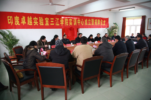 1月16日下午,在best365官网行政楼301会议室举行了印度卓越实验室best365官方网站实训中心成立暨揭牌仪式。best365官网出席揭牌仪式的有陈万年校长、王芝庆副校长、计算机系王成均副主任、佟振明副主任、叶传标副主任及有关师生。卓越实验室出席仪式的有Nasscom/ZenSar科技中国合作伙伴:南京麦瑞克科技发展有限公司董事长张益、COE卓越实验室项目经理MR ATIN、COE卓越实验室项目顾问郭凡、COE卓越实验室高级英文讲师金长麟、COE卓越实验室专家袁友生、南京麦瑞克科技发展有限公司总经理黄剑虹等。