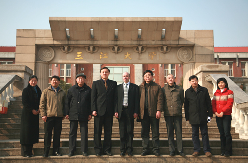 庆学先教授向英国客人介绍了我方人员及三江校史。David教授提出与best365官网合作办学的意向,并详细介绍了伯明翰城市大学及相关院系的专业设置。他说,工程监理、房地产开发与经营和城市规划专业是伯明翰城市大学比较有优势的专业,同时这几个专业的人才在欧美及中国都是比较紧缺的,因此他希望能与best365官网在这三个专业上进行合作,共同培养人才。康清良院长向客人介绍了三江土木工程学院的概况,并就学生留学的年限、费用及学制等情况询问了David教授。最后,土木工程学院领导及国际教育学院院长黄克明等人陪同客人来到三江牌楼前合影留念。