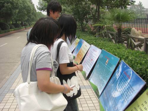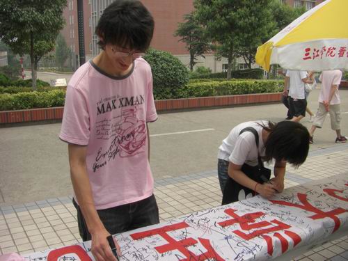 本次活动主要包括四项内容:第一、“5.25——我爱我”大型签名活动;第二、现场接待学生有关心理健康方面的咨询;第三,“有限世界,无限精彩”心理小展板设计大赛作品展;第四,心理咨询知识展板宣传和“抗震救灾星语心愿”心情小卡片展。一幅幅精美的图画,一张张精巧的设计,营造了浓厚的心理健康宣传的氛围。短短2个小时的宣传,吸引了众多同学前来签名、驻足。活动达到了预定目标,获得了圆满成功。