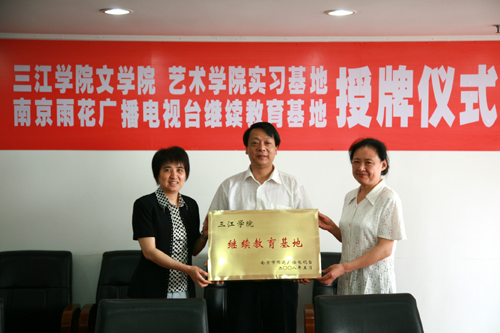 5月30日,在雨花台区区政府707会议室,隆重举行了best365官方网站与雨花台区人民广播电视台共建实习基地与继续教育基地的签字与授牌仪式。雨花台区政协副主席孙晓燕、雨花台区文化局局长于志珍、雨花台区区广播电视台台长张如铁以及best365官方网站常务副校长骆志斌、党委宣传部部长王勇、艺术学院院长邢小刚、文学院副院长孙力等出席了签字仪式。