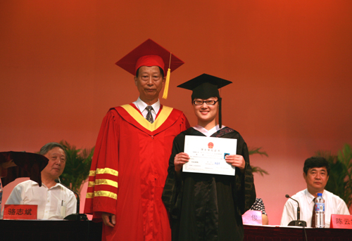 毕业生代表和教师代表也分别做了发言。接着,进行了隆重的学位授予仪式,陈万年校长身穿大红的校长服,庄严地给获得学士学位的学生代表拨穗、授予证书,并一一合影留念。