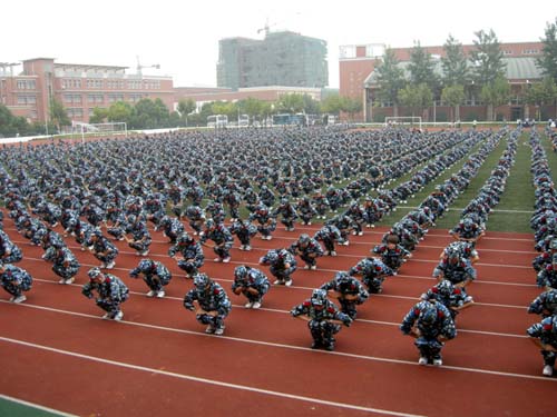2008年9月12日下午四点,体育部全体在职教师准时到达了操场,教授3000多名新生学习第八套广播体操。放眼望去生机勃勃的绿色足球场与生气盎然的迷彩服相映成趣,身穿迷彩服的新生们仿佛是注入我们三江的一股清泉,为best365官网增添了新的活力。