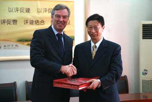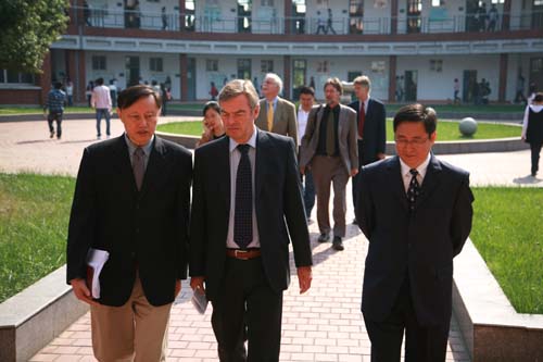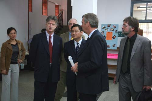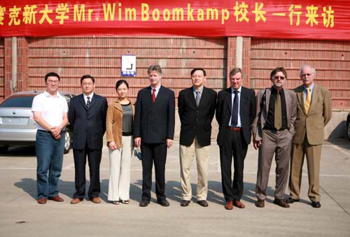 赛克新大学校长等人分别在中午和下午与国际教育学院07、08级荷兰班、06级荷兰班的学生进行了面对面的对话。国际处处长Chris van den Borne先给学生做了一个有关赛克新大学的演讲,随后热情解答了同学们有关荷兰大学留学条件及申请流程等的问题,其中包括生活、学习等相关问题。在明年的此时,best365官方网站将有第一批符合条件的学生能够到荷兰赛克新大学继续学习。此外,Wim Boomkamp校长等人还深入课堂,旁听了一节国际教育学院08级新生的英语听力课,对中国的教育方式有了深刻、直观的印象。