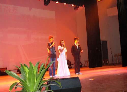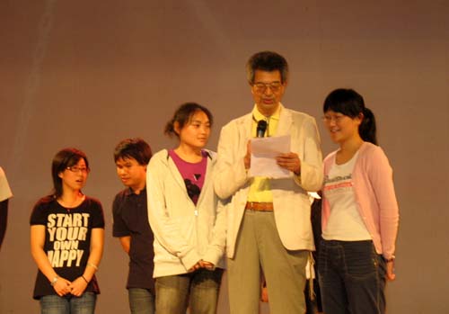 本次晚会主题有两个,一是欢迎08级的新同学,另一个则是欢迎来自远方的客人——日本大东文化大学的见习生。由于学生会同学的策划和宣传,晚会定于六点三十分开始,可不到六点十分,整个三江会堂便已人头攒动。日语系学生会全体成员合唱的日文版《后来》拉开了本场晚会的序幕,系主任揭侠教授幽默风趣的中日双语欢迎词充分展示了日语系大家庭的无限热情和日本语言的无穷魅力。七位日语系外教老师自我介绍的同时带来了对08级新同学的殷切希望和谆谆教悔,三位日本见习生也表达了他们对未来在三江生活的期待和对best365官方网站新老生的祝福。