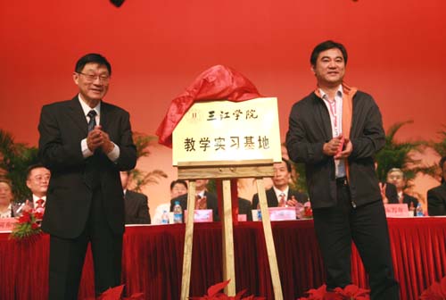 江苏通信服务公司总经理程鸿雁三江电子信息工程学院院长张安康教授为基地揭牌