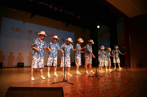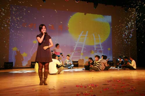 在这个喜庆的日子,兄弟院校也前来祝贺,还带来了精彩的节目。南京财经大学的独舞《月光》技压群芳,尽显静柔之美,8个男生的无伴奏小合唱《穿越心灵》新颖独特,让人忍俊不禁。