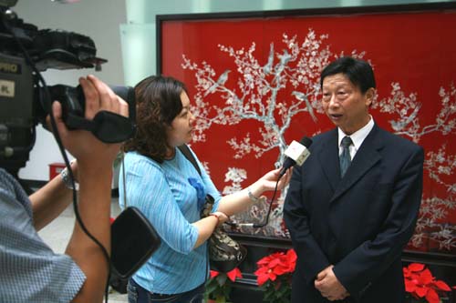陈万年校长接受电视台记者采访