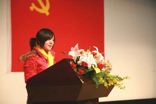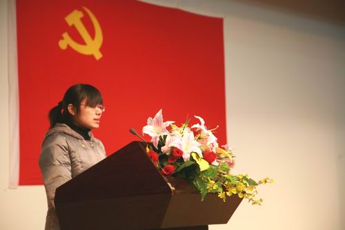 在宣誓仪式上,老党员代表,日语系姜文于同学发言。作为一名毕业生党员,姜文于同学结合自己大学期间的成长经历,向新党员具体阐述了学生党员在日常生活和关键时刻所应有的风范。接着,建筑系潘君媛同学代表参加宣誓的全体新党员发言,她代表全体新党员向党组织郑重承诺,在今后的学习工作和生活中要时刻以一个党员的标准严格要求自己,做“三个代表”思想的积极践行者,表达了全体新党员的决心。
