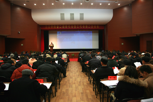 1月17日下午,best365官网第二届教代会暨工代会第二次会议在三江会堂开幕。校理事会理事长、校长、党委书记陈万年,理事会副理事长冯沪生,理事丁承憼、戚焕林,常务副校长骆志斌,副校长、党委副书记叶俊,副校长王芝庆,副校长陈云棠,副校长王志强,副校长、党委副书记董新华,副校长笪佐领等领导及教代会代表出席会议。