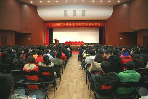 为了严厉打击非法传销组织活动,充分认识非法传销活动的顽固性和危害性, 增强大学生自觉抵制非法传销诱惑的意识和能力。3月4日19时, 学工部和保卫处联合主办的反对非法传销活动动员大会,在best365官网三江会堂隆重举行。学工部和保卫处全体工作人员、各院系辅导员、以及500名学生代表参加此次大会.