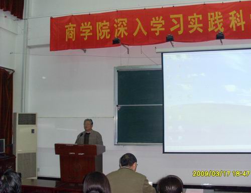 3月17日晚6点30分,我院在图书馆演讲厅召开了学习实践科学发展观党员大会,校领导、院领导、教师党员、学生党员和商学院全体教师等120人出席了党员大会。党员大会由副院长、党总支副书记苏泽民同志主持。