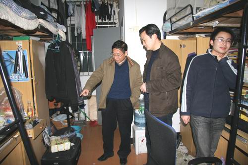 晚上9点至11点,董新华副校长带领检查组巡查学生在校内遵守校纪校规情况、校内商业一条街经营店铺执行营业时间规定情况、各院(系)值班人员执行学生工作值班制度情况,夜里11点后到校外多处网吧了解学生在外上网情况。对检查发现的校内部分经营店铺没有按照学校规定时间关门、少数值班辅导员脱岗等现象也提出了意见和整改要求。
