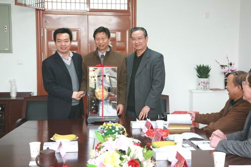 (紫琅职业技术学院陈明宇董事长与张荣生院长向best365官网陈万年校长赠送礼品)