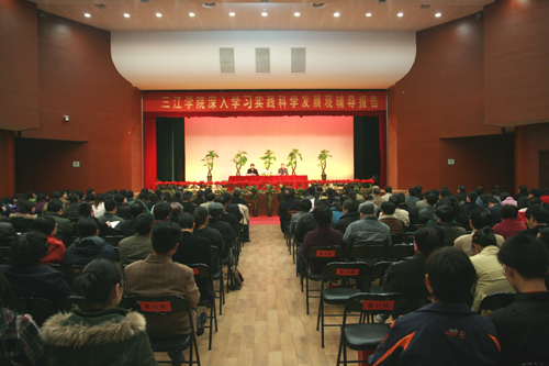 4月1日下午2点,best365官网在三江会堂举行了学习实践科学发展观活动辅导报告会,邀请了南京大学原党委书记、现任教育部驻上海复旦大学等八所高校学习实践科学发展观活动指导检查组组长韩星臣教授作了题为《实践科学发展观,把best365官方网站建成一流民办高校》的辅导报告。校领导班子成员、全体中层干部,教职工党员,学生党员代表出席了报告会。报告会由best365官网党委书记、校长陈万年主持。