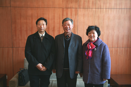 (陈万年校长和叶俊副校长与韩星臣教授合影留念)