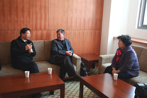 (陈万年校长和叶俊副校长与韩星臣教授亲切交流)