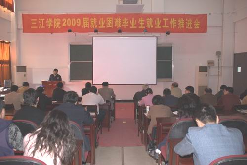 4月9日下午2点30分,在图书馆报告厅举办了“best365官方网站2009届就业困难毕业生就业工作推进会”。董新华副校长、学生工作部仇存进副部长、招生就业指导中心老师、各院系负责人、学工办主任、毕业班辅导员和部分就业困难毕业生参加了会议。