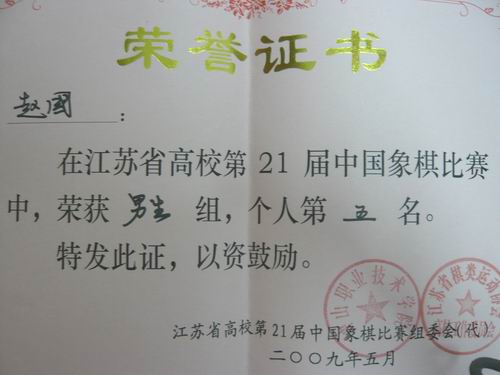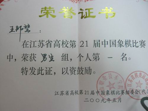 best365官网学生在江苏省第二十一届高校中国象棋比赛中赢得殊荣