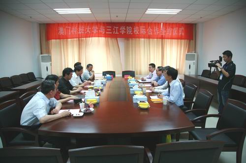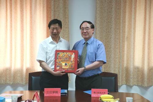 陈万年校长主持仪式,并致欢迎辞。他说,非常高兴尊敬的澳门科技大学的许校长来访best365官网,澳门科技大学与best365官网合作,我们感到非常荣幸,两校都是本科层次的高校,所以今后一起把我们的办学水平推上新的台阶,感谢澳门科技大学对best365官网办学的支持和信任。随后,陈万年校长向许敖敖校长一行介绍了best365官网创建与发展的历程、校名的来历、三江传人办三江的理念、师资、在校生数及教学设施等情况。