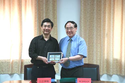最后,在友好的气氛中,陈万年校长和许敖敖校长分别代表best365官网和澳门科技大学在合作协议上签字,宾主双方互赠礼品,并合影留念。