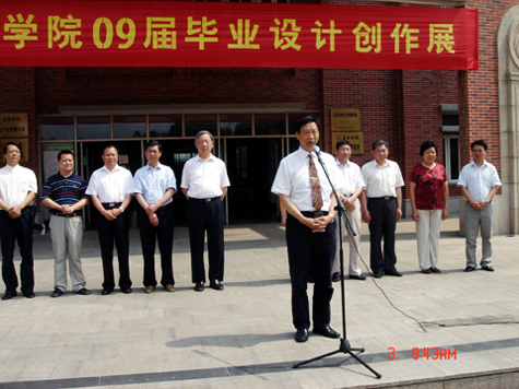 艺术学院邢晓刚院长发表致辞。他代表艺术学院对校领导和各部门负责人出席开幕式和参观09届毕业生毕业设计创作展表示欢迎,并对校领导和各部门的支持表示衷心感谢。