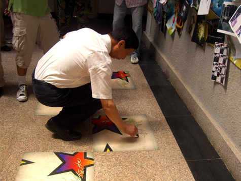陈校长带头在星光艺术大道上签名