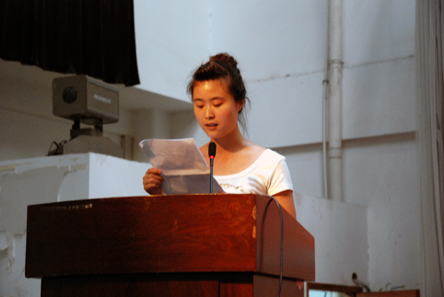 省级“三好学生”代表:高职院2006级旅游管理本科班薛小莉同学发言