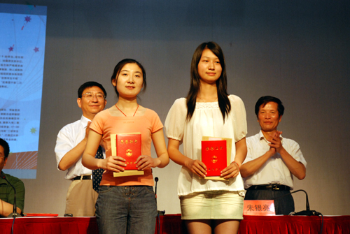 董新华副校长、朱银亮部长为受表彰学生颁奖