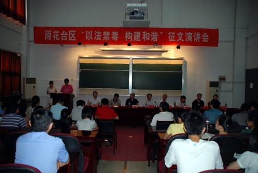 雨花台区禁毒委主任、政法委书记娄华训为演讲大会致辞,他就雨花台区禁毒工作发表了重要讲话。他要求全体大学生依法禁毒,远离毒品,做国家栋梁之材。