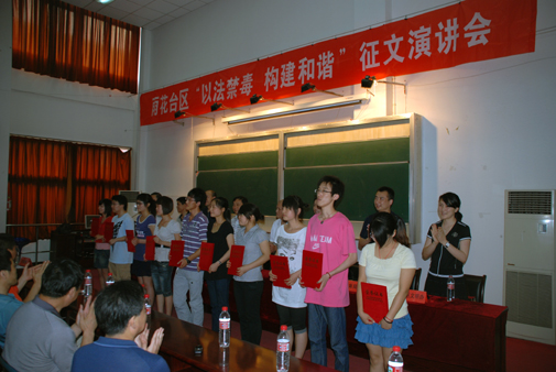演讲会上,法律系10名参加演讲的同学依次登场,从不同层面论述了毒品的危害,以及如何远离毒品,做一个健康的人。他们精彩纷呈的演讲赢得了全场雷鸣般的掌声。