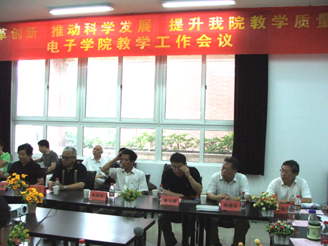 首先,张安康院长就这次会议召开的背景作了介绍,他说,当前电子学院正处于重大变革、转折时期。通过学习科学发展观,认识到建设人力资源强国,必须优先发展教育;电子学院近期师资力量的变更引起更换新鲜血液;学校管理制度正进行着重大改革,所以召开此次教学工作会议,力求跟上学校步伐。其后,张院长从四个方面全面总结、展望了电子学院的工作。他指出,深化改革,顺应信息技术的迅猛发展,促进专业建设和学科建设;立足学院实际,促进内涵发展,办出特色;强化教师队伍建设,是完善电子学院质量建设的长效机制;继续探索校企合作。接着,范寿康副院长从修订09级人才培养方案、测控技术与仪表专业的申报情况、实验室建设和专科教育问题等方面作了汇报和展望;随后,杨亦文副院长就学工工作、毕业生就业率、党建问题和科学发展观的学习等情况也作了详细的分析和总结。