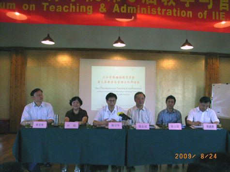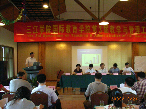 24日上午9:30,研讨会正式开始,国教院黄克明院长首先发言,他主要介绍了国教院的基本情况、教学与学工工作中的改革创新措施以及国教院在过去一年中所取得的成绩,并对2009-2010学年的工作重点作出了布署。他要求全体教职员工要以科学发展观为指导,加强优秀团队建设,改进学生工作,提高教学质量,与时俱进,勇于创新,实现二级管理目标,以优异成绩迎接中外合作办学质量评估。