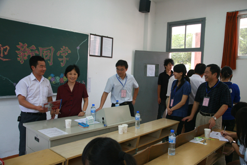 在迎新的两天时间里,校长陈万年,常务副校长骆志斌,副校长、党委副书记叶俊,副校长王芝庆,副校长陈云棠,副校长、党委副书记董新华、副校长笪佐领等校领导及各相关部门负责人等亲临迎新第一现场,指挥、协调迎新工作,亲切慰问迎新工作人员,并和新生和家长亲切交谈,了解新生学习与家庭情况。