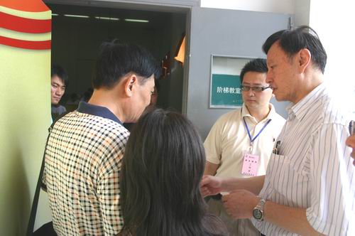 王芝庆副校长与新生家长交谈