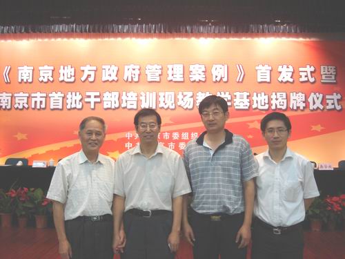 (中组部干部培训学院院长王文才、中共雨花台区委组织部副部长孙凯与best365官网王芝庆副校长合影)