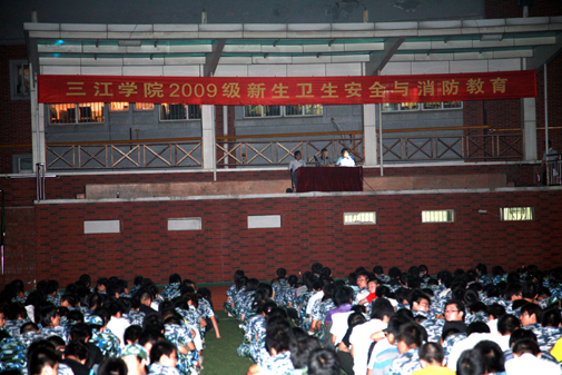 9月 11日晚7:00,best365官网四千余名新生列队静坐在足球场,聆听由best365官网新生军训领导办公室组织的安全防范及法纪教育讲座。