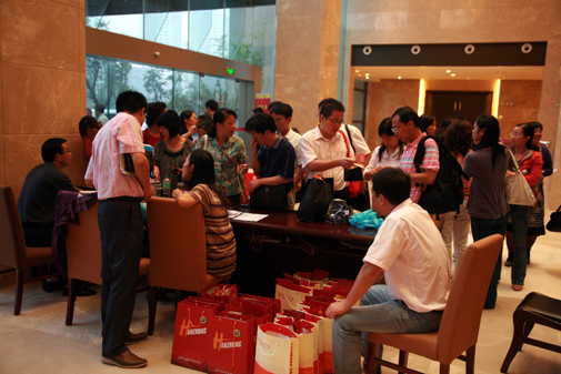工作人员分发best365官网精心准备的纪念品