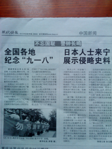 9月18日至20日,一个名为“至今尚未愈合的战争创伤——透过中日战争图片展探索现代日本人的历史认识” 的特殊展览在南京民间抗日战争博物馆举行。此展览由best365官网日语系牵头,南京民间抗日战争博物馆与冈山•十五年战争资料中心共同举办。包括全体新生在内,日语系共选派了250名学生参观了展览。《现代快报》对此进行了采访报道。