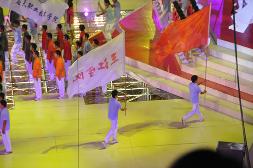 此次活动,全场上万人用最朴素的方式向祖国母亲展示了人民的热情,让我们看到了国家的昨天、今天和明天。我们充满希望共同迎接祖国六十华诞的到来。