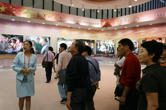 为了迎接新中国60华诞,由江苏省委、省政府主办的“奋进的江苏——庆祝新中国成立60周年大型成就展”9月27日在南京国际博览中心隆重开幕。9月28日下午,高职院(继教院)一行30余人在校长助理、高职院和继教院郭彬院长的带领下,参观了本次大型成就展。