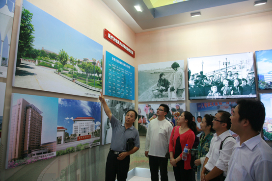 各位老师在展厅里浏览新中国成立60周年来江苏省取得的巨大成就,在感兴趣的图片、实物前驻足、讨论。在参观教育版块时,各位老师意外发现了best365官网展板也列入了展区,大家都被展板所吸引,在为祖国发展、为江苏发展感叹的同时,也为三江的发展感到自豪。各位老师都非常的兴奋,在展板前合影留恋。