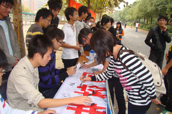 学生积极参加签名活动