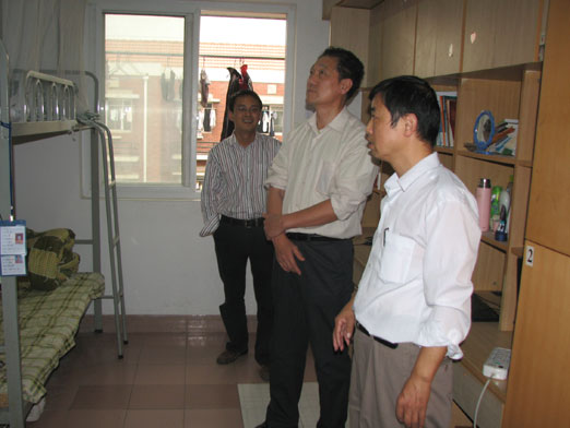 电气与自动化工程学院孙宪君院长与宿管站负责人检查学生宿舍内务卫生