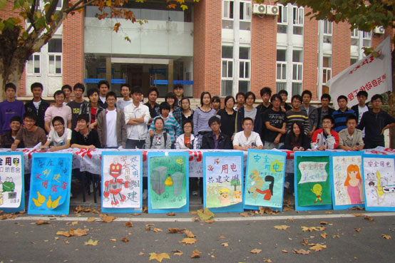 10月28日中午,电气与自动化工程学院在体育馆北门组织开展了“迎接双文明创建,安全用电进校园”签名活动,学生会成员通过横幅宣传、散发安全用电常识宣传单、动漫海报展示、现场讲解及走访等形式向过往的行人宣传安全用电的相关知识。在短短的一个半小时内,宣传横幅上留下了包括有关领导、教职工与学生近千人的签名。