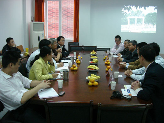 校领导与九江庐扬公司讨论合作内容(张正君摄)
