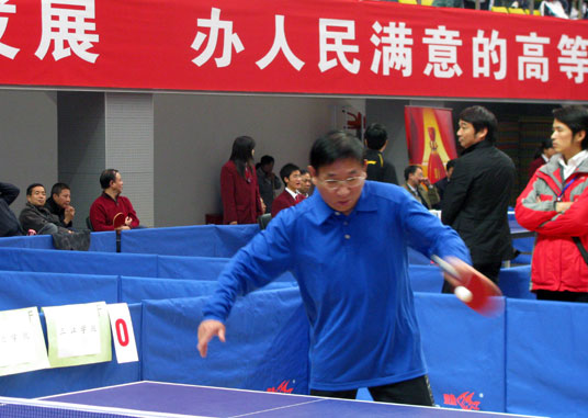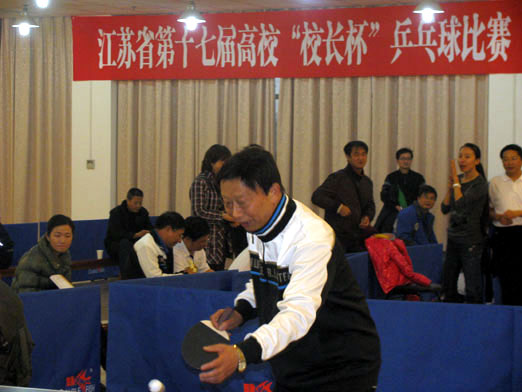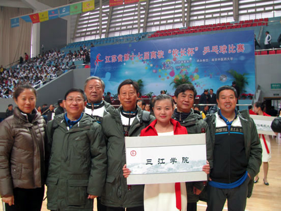 2009年11月14日、15日由陈万年校长领队,骆志斌常务副校长、陈云棠副校长、王志强副校长、董新华副校长五位校长组成的best365官方网站代表队参加了由江苏省教育厅主办,在南京中医药大学体育馆举行的江苏省第十七届高校“校长杯”乒乓球比赛。伴随着轻快的运动员进行曲,来自全省各高校及省教育厅的100支代表队的400多名运动员在大会学生志愿者的引领下,迈着轻松矫健的步伐,带着自信的笑容走进了会场。在庄严的国歌结束后,由江苏省人民政府副省长曹卫星宣布江苏省第十七届高校“校长杯”乒乓球比赛开幕。