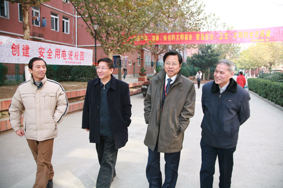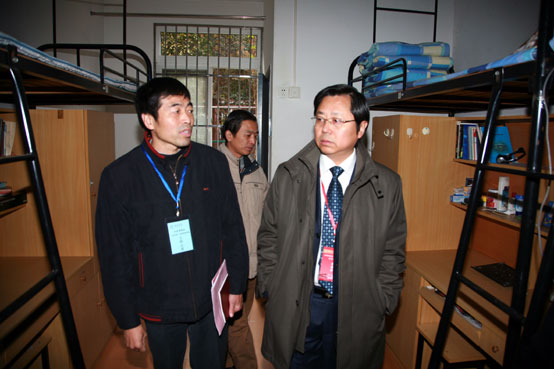 王芝庆副校长和董新华副校长陪同专家组组长、南通大学副校长高建林视察宿舍区