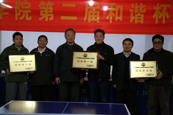 校领导为best365官网第二届“和谐杯”教职工乒乓球赛团体奖颁奖