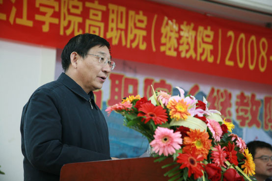 最后陈万年校长代表学校对我院办学12年所取得的成绩予以了肯定,对受表彰的同学表示了祝贺和勉励。同时也对高职院(继教院)今后的发展提出了希望,陈校长表示:在全校都开始二级目标责任管理的情况下,高职院作为第一个目标责任管理试点院系取得了很好的成绩,希望各院系、各部门给予更多的帮助和支持,在成绩面前高职院应认清形势,戒骄戒躁,要抓住机遇,不断发展,目前由南京市总工会和德国职业教育联盟签署办学协议成立的南京市职工大学中德职业教育学院今后就在高职院办学,这是一个契机,高职院应积极引进和借鉴德国“双元制”教学的成功经验,做好校企合作,订单式教育,加大对人才的培养力度,真正做到为培养适应社会和企业需要的应用型、技能型人才而努力,再创高职院(继教院)的新辉煌。